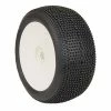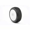 The REBAR is designed for indoor tracks and hard packed, blue grooved outdoor tracks. The REBAR features double side rails on the edges of the tire provide extra sidewall support. This increases side bite and keeps the front of your buggy planted in the turns. The center rail keeps the REBAR tracking like an arrow on the straights and helps with initial turn in feel.