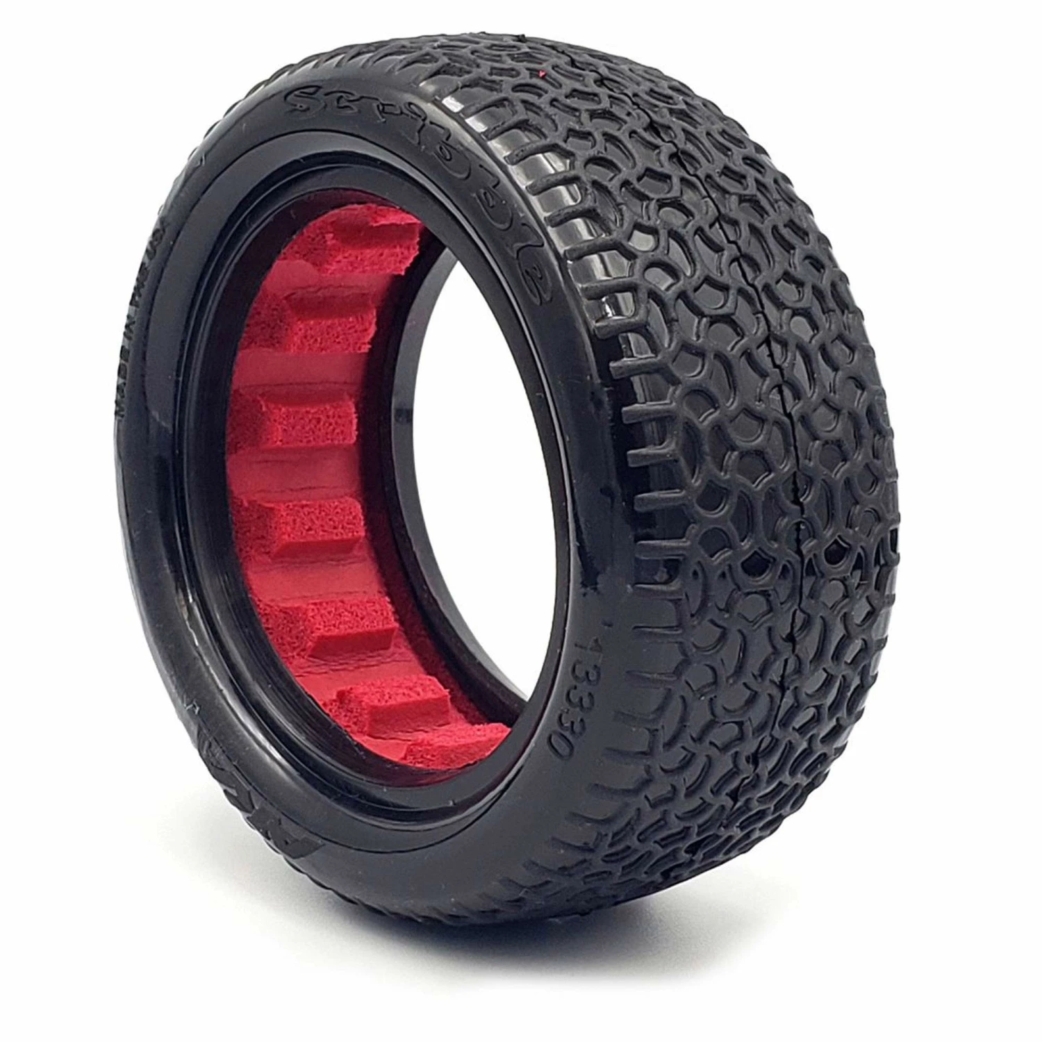 AKA PRODUCTS, INC. 1/10 Scribble Front 4WD 2.2 Tires, Ultra Soft with Red Inserts (2): Buggy for Tires & Wheels