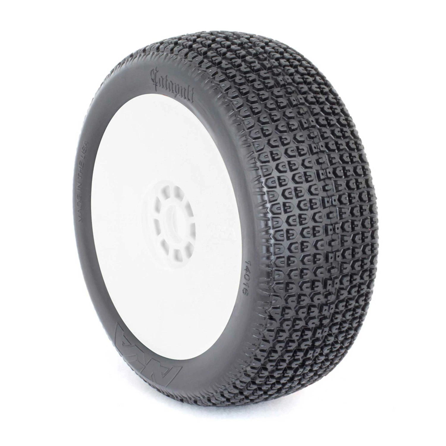 AKA PRODUCTS, INC. 1/8 Catapult Medium Long Wear Pre-Mounted Tires, White EVO Wheels (2): Buggy for Tires & Wheels