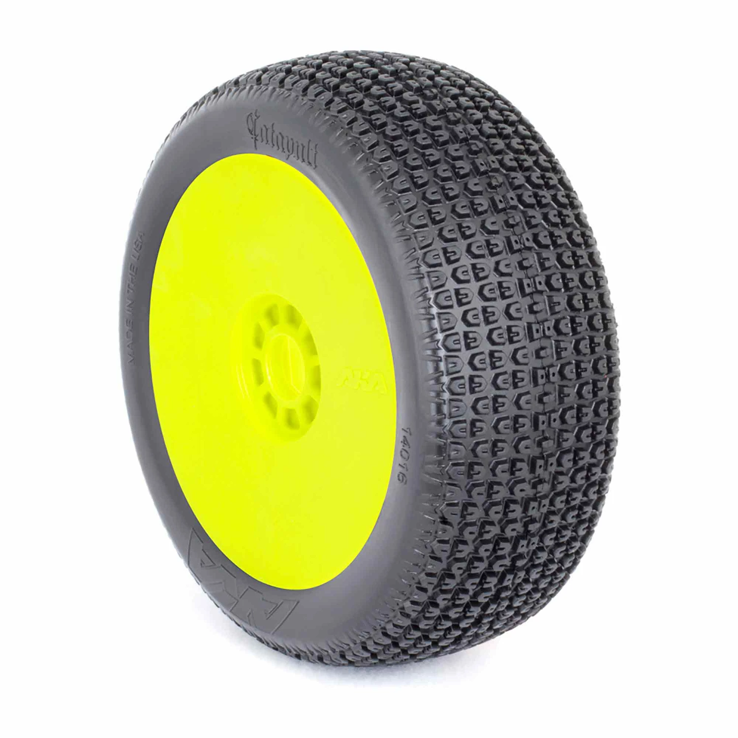 AKA PRODUCTS, INC. 1/8 Catapult Super Soft Pre-Mounted Tires, Yellow EVO Wheels (2): Buggy for Tires & Wheels