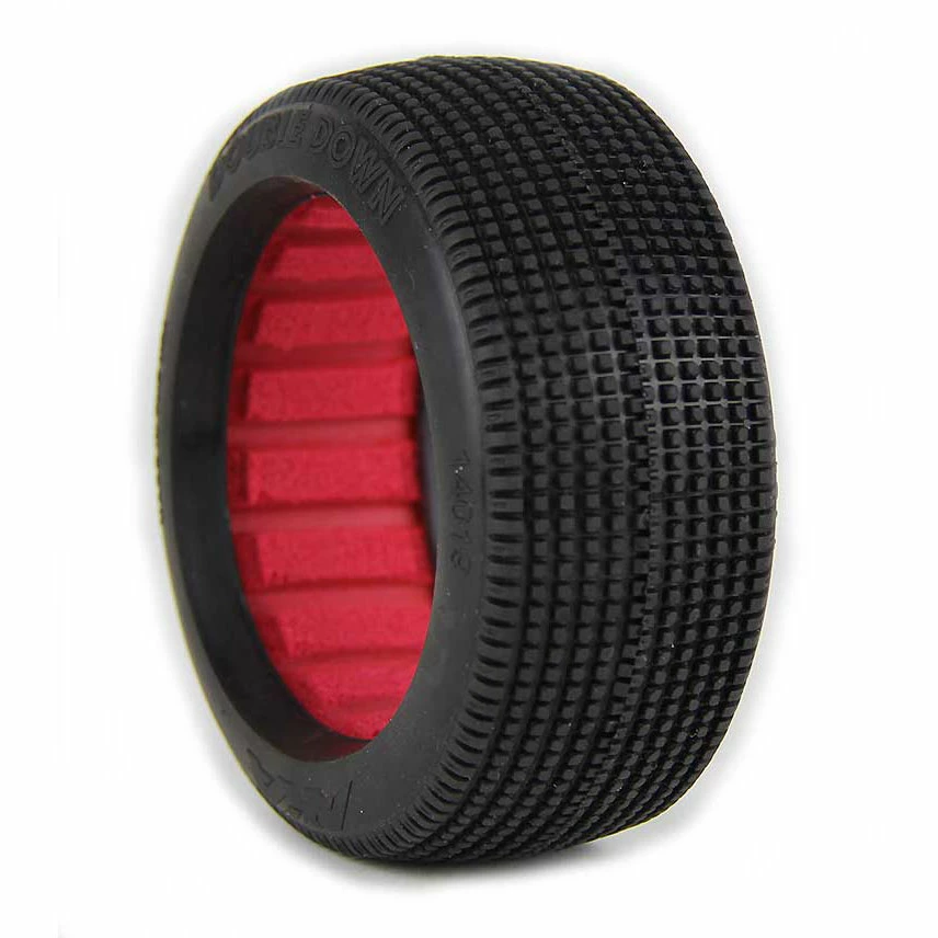 The 2016 world championship winning Double Down tire has been designed to fit between the Impact and the Zipp in the AKA tire line. Best used when you have a slightly dusty track and better wear characteristics are needed. Reasons could be due to an abrasive surface or a surface that is polished which creates lots of wheel spin. The pin size and spacing has been designed to give more room for dust to clear the tread pattern yet still have the pin density across the carcass to give it great wear characteristics. Used by David Ronnefalk to win the 2016 IFMAR 1:8 Buggy World Championship in convincing fashion on one of the most challenging tracks for a world championship in years!