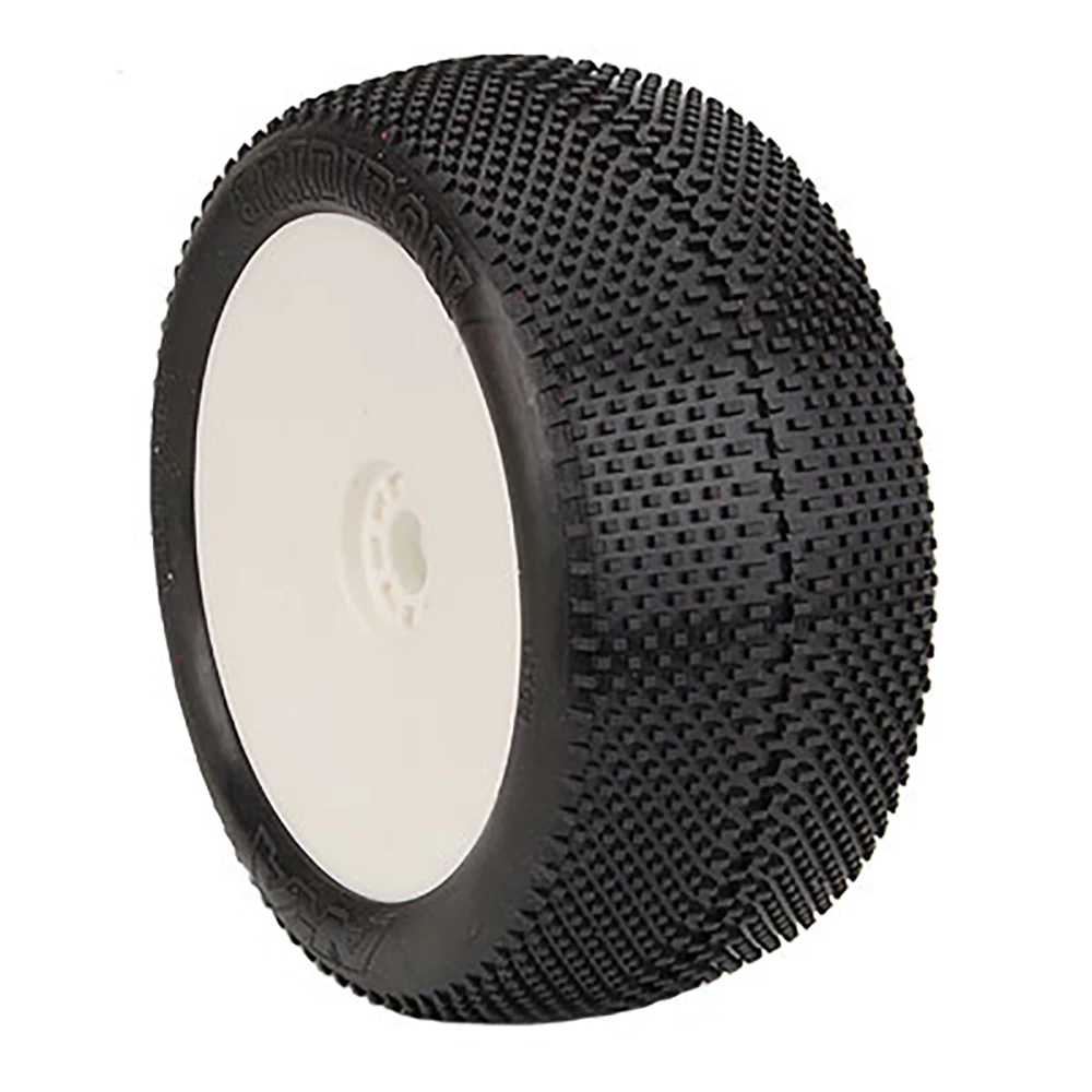 AKA PRODUCTS, INC. 1/8 EVO Gridiron Super Soft Long Wear Pre-Mounted Tires, White Wheels (2): Truggy for Tires & Wheels