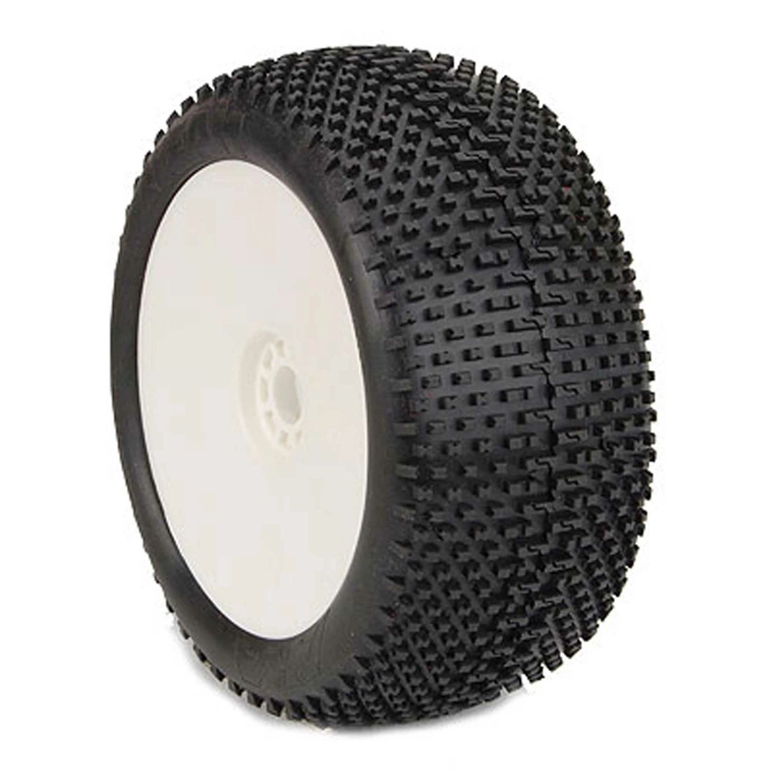 AKA PRODUCTS, INC. 1/8 EVO I-Beam Super Soft Long Wear Pre-Mounted Tires, White Wheels (2): Truggy for Tires & Wheels