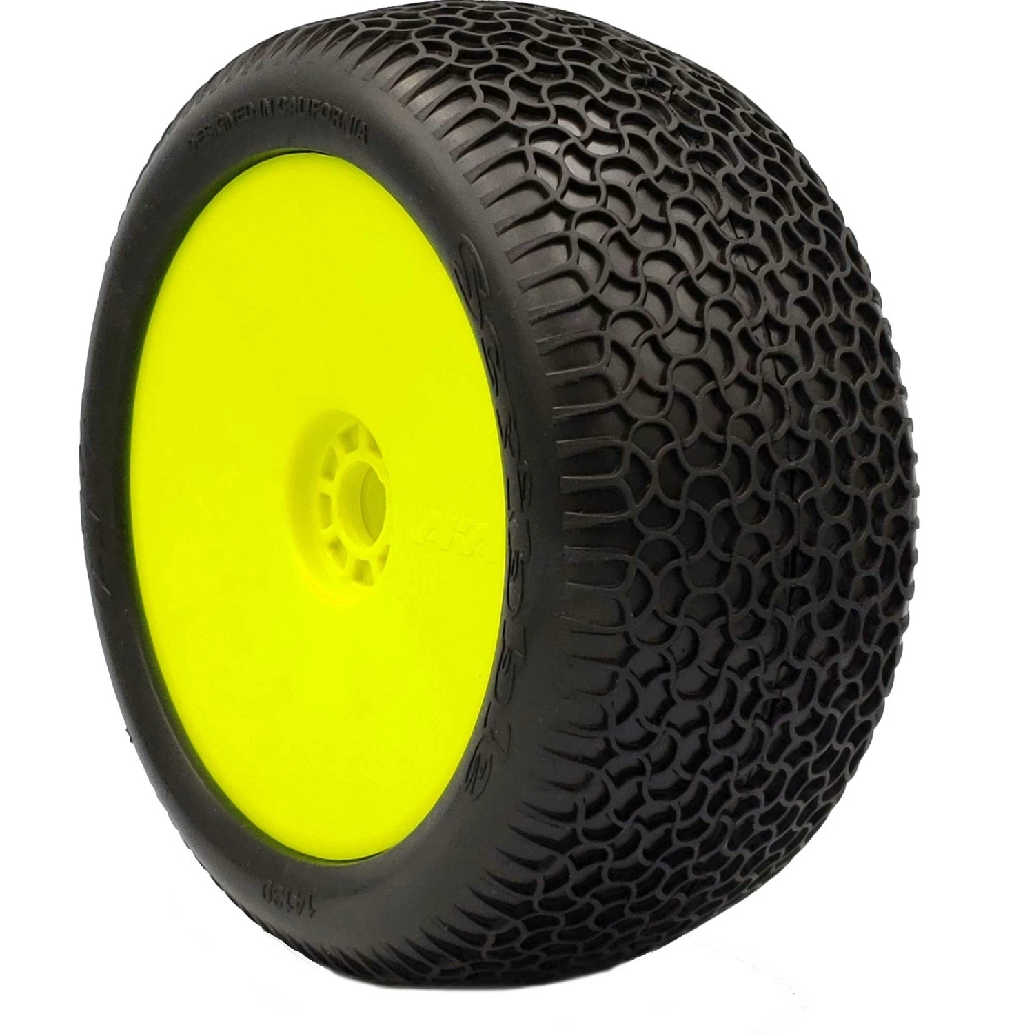 AKA PRODUCTS, INC. 1/8 EVO Scribble Super Soft Pre-Mounted Tires, Yellow Wheels (2): Truggy for Tires & Wheels