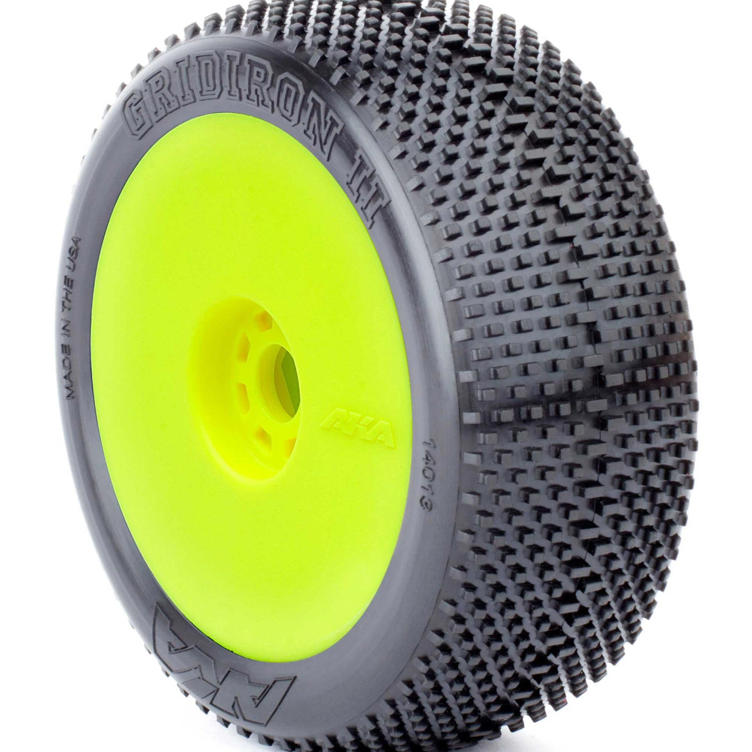 AKA PRODUCTS, INC. 1/8 Gridiron II Soft Long Wear Pre-Mounted Tires, Yellow EVO Wheels (2): Buggy for Tires & Wheels