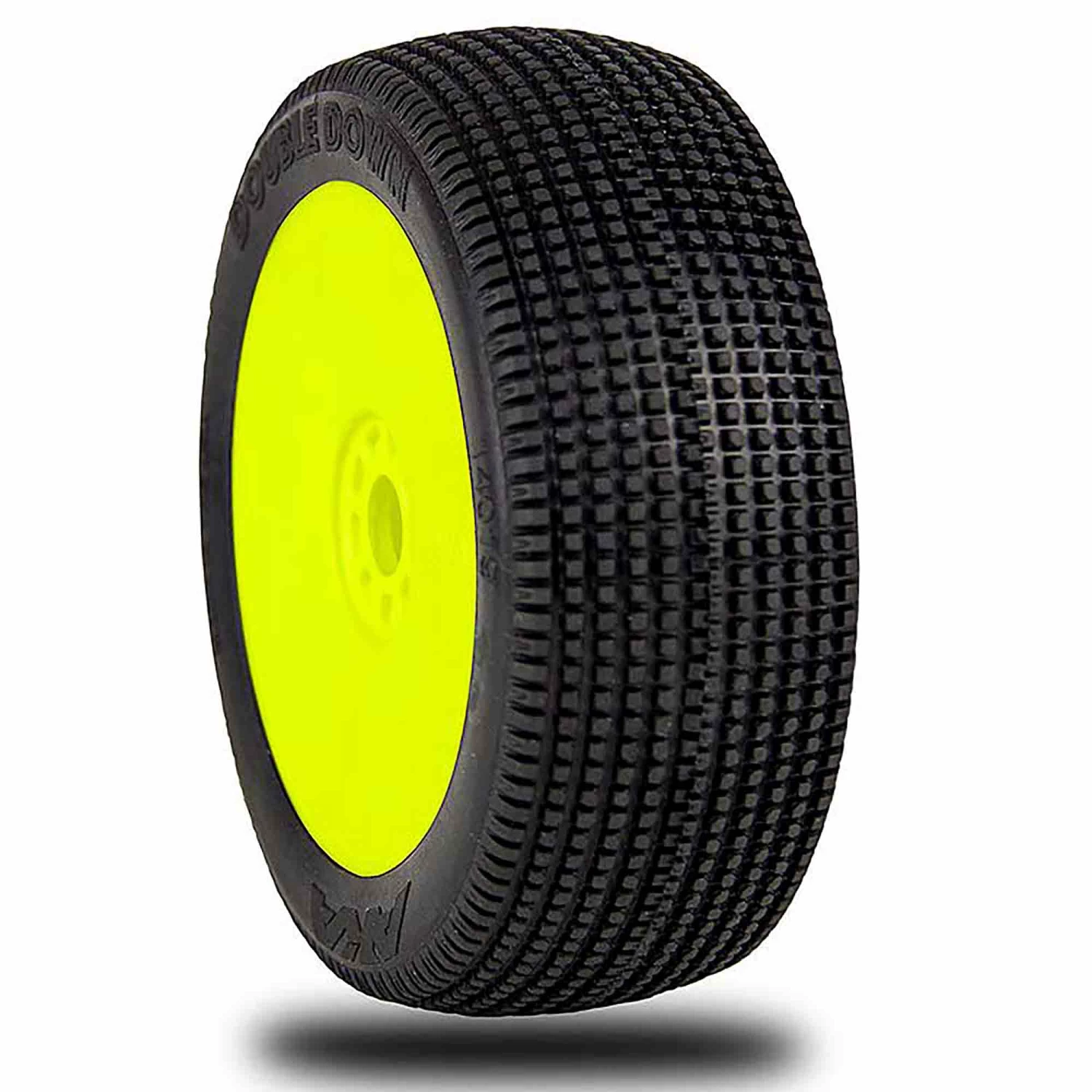 AKA PRODUCTS, INC. 1/8 Super Soft Double Down EVO Pre Mounted Wheels Yellow (2): BX for Tires & Wheels