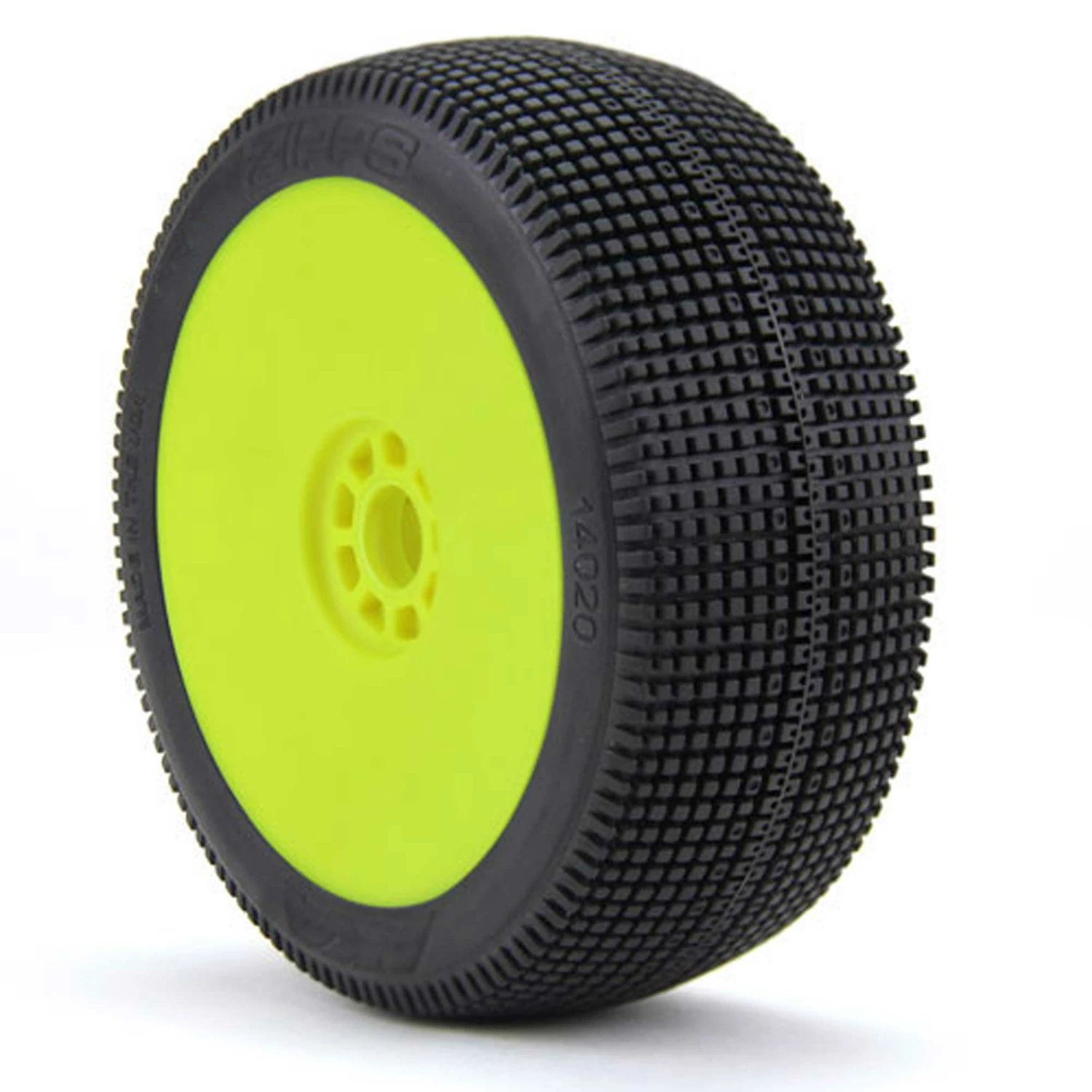 AKA PRODUCTS, INC. 1/8 Zipps Medium Long Wear Pre-Mounted Tires, Yellow EVO Wheels (2): Buggy for Tires & Wheels