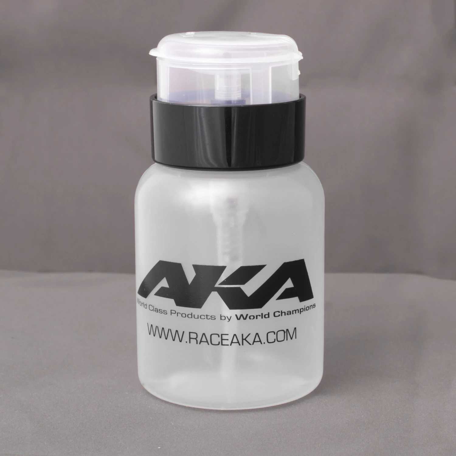 The AKA Mini Pump Bottle with Locking Cap is perfect in your pit for dispensing liquids such as, body cleaners, tire sauce, tire cleaners, etc. Pop the lid open, twist to unlock, and press down with a towel or cloth to dispense contents. Works perfect for cleaning tire beads during the mounting process and many more applications.